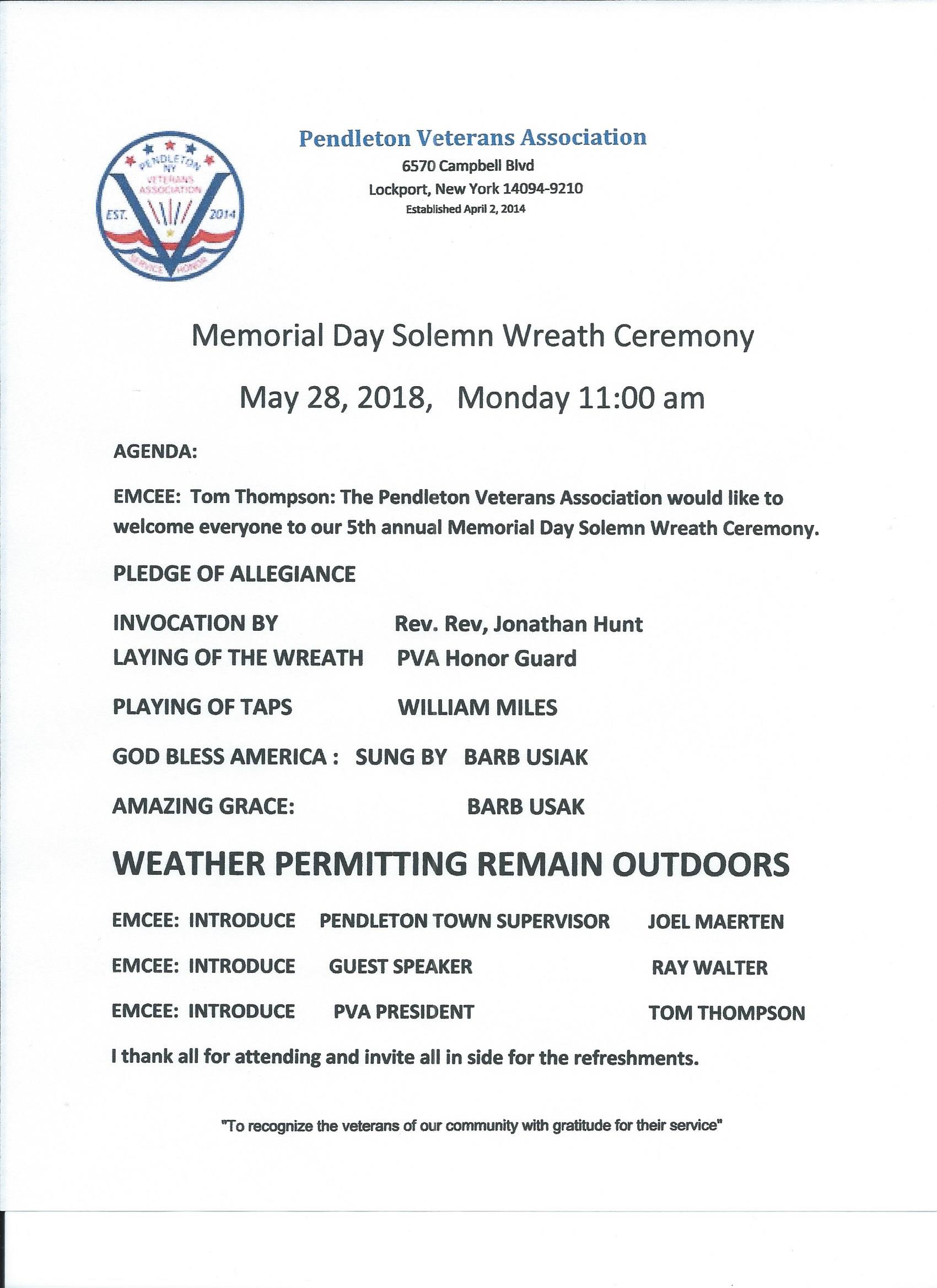 Pendleton Veterans Association – Wreath Laying Ceremony