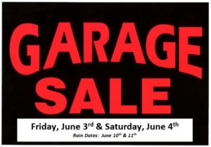 The sale is Friday, June 3rd & Saturday, June 4th. (Rain dates: June 10th & 11th)